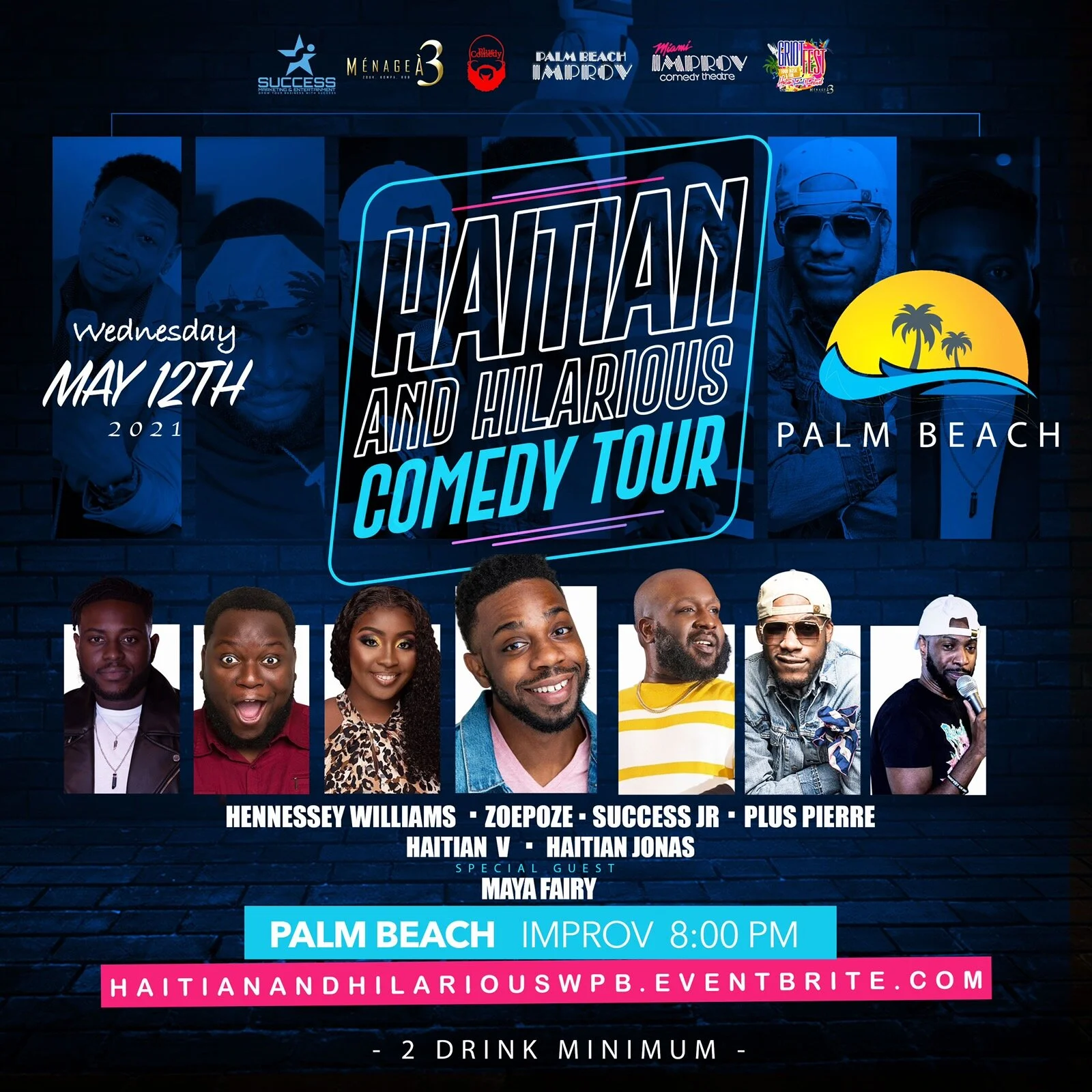 Haitian & Hilarious Comedy Tour (West Palm Beach) Wednesday, May 12, 2021 8:00 PM 20:00 Thursday, May 13, 2021 12:00 AM 00:00 Palm Beach Improv 500 South Rosemary Avenue West Palm Beach, FL, 33401 United States (map) Google Calendar ICS HAITIAN & HILARIOUS COMEDY TOURComedians:SUCCESS JR.PLUS PIERREHAITIAN VZOE POZEHAITIAN JONASHENNESSY WILLIAMSSpecial Guest:MAYA FAIRYTickets:PURCHASE HERE