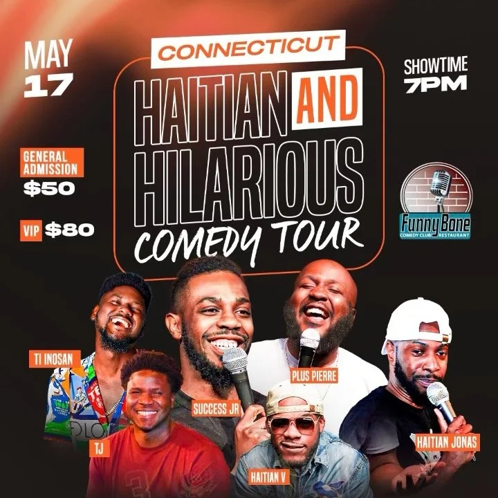 Haitian & Hilarious Comedy Tour (Connecticut) Tuesday, May 17, 2022 7:00 PM 10:00 PM 19:00 22:00 Hartford Funny Bone 194 Buckland Hills Drive Manchester, CT, 06042 United States (map) Google Calendar ICS HAITIAN & HILARIOUS COMEDY TOURFeaturing:SUCCESS JR.PLUS PIERRETJHAITIAN JONASTI INOSANHAITIAN VTickets:PURCHASE HERE