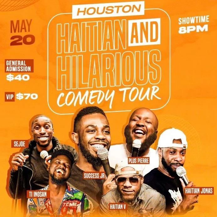 Haitian & Hilarious Comedy Tour (Houston) Friday, May 20, 2022 8:00 PM 11:00 PM 20:00 23:00 The Komedy Lounge Farm to Market 1960 Road West Houston, TX United States (map) Google Calendar ICS HAITIAN & HILARIOUS COMEDY TOURFeaturing:SUCCESS JR.PLUS PIERRESE JOEHAITIAN JONASTI INOSANHAITIAN VTickets:PURCHASE HERE